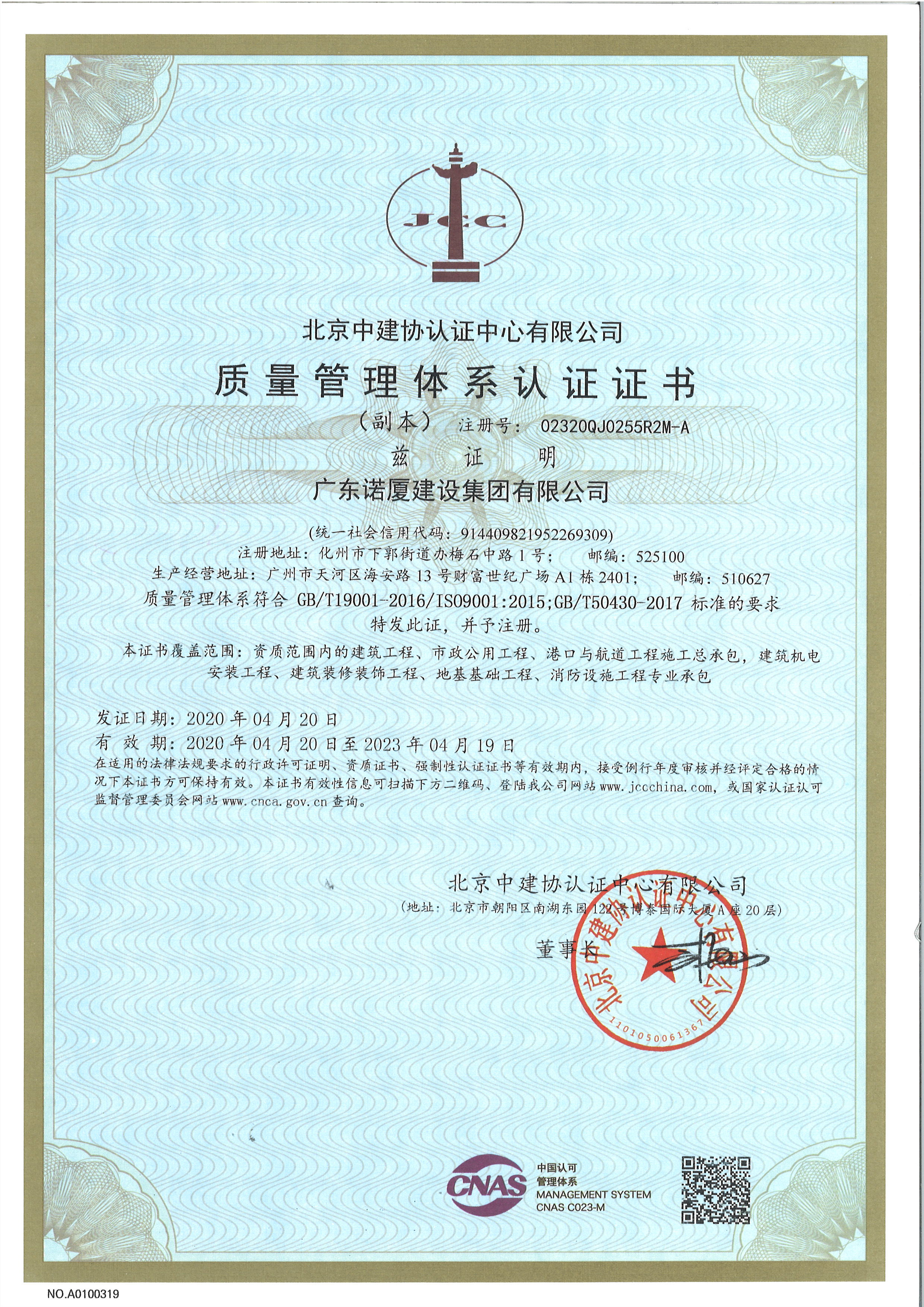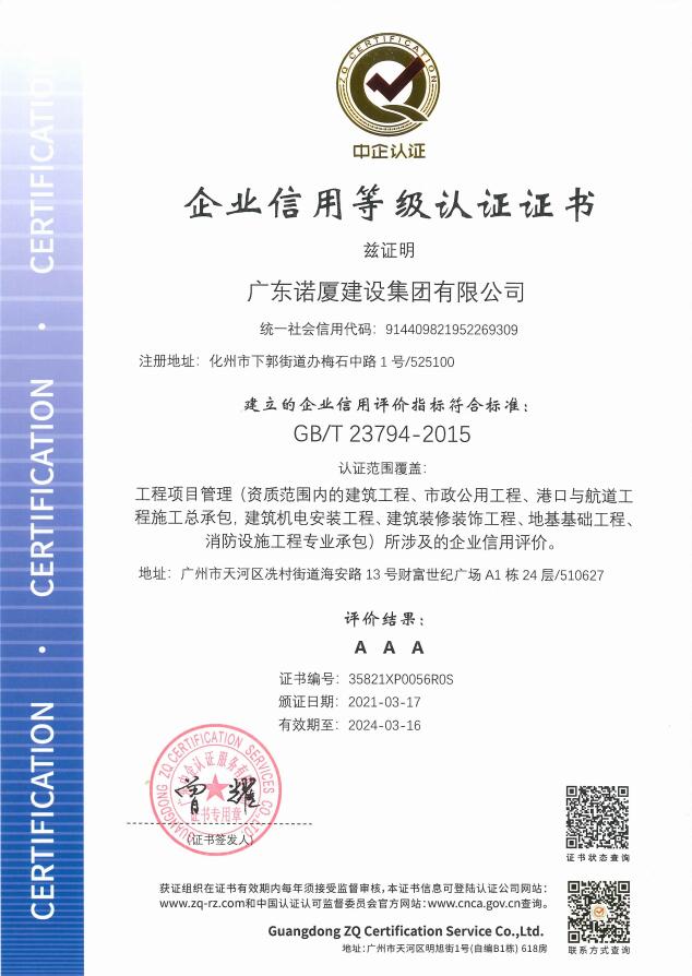 廣東諾廈建設(shè)集團(tuán)有限公司是諾廈集團(tuán)的核心企業(yè),具備國家房屋建筑工程施工總承包壹級(jí)、市政工程施工總承包壹級(jí)、港口與航道工程總承包、建筑裝修裝飾工程、消防設(shè)施工程、地基基礎(chǔ)工程、機(jī)電設(shè)備安裝工程、體育場地設(shè)施工程、建筑智能化工程、河湖整治工程、水利水電工程等資質(zhì)。......